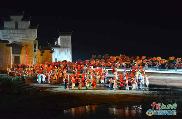 4月16日晚上8時許,婺源大型山水實景演出《夢里老家》現場來了一群特殊的游客,他們是來自全國近50家融媒體看江西的采訪團成員。面對這樣一場大型演出,許多人還是第一次目睹了這場層出不窮的民俗風情美、徽派建筑美和人文藝術美的大戲。