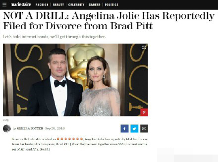 北京時(shí)間9月20日晚,據(jù)外媒報(bào)道,安吉麗娜在本周一正式提出離婚,理由是不可調(diào)和的分歧。倆人從2004年-2005年開始相戀,并于2014年8月結(jié)婚,不過才過了2個(gè)結(jié)婚紀(jì)念日就已經(jīng)分手。根據(jù)文件顯示,倆人于9月15日正式分開。同樣指出,朱莉要獲得6個(gè)孩子的撫養(yǎng)權(quán),而皮特有共同監(jiān)護(hù)權(quán),但只能接受探視。另外據(jù)TMZ稱,倆人就孩子的教育方式產(chǎn)生嚴(yán)重分歧,并導(dǎo)致離婚。