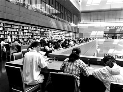 走進(jìn)國(guó)圖北館,玻璃窗內(nèi)的閱覽室里一片寧?kù)o;玻璃窗外,大廳中卻人來(lái)人往。23歲的張悅是一名來(lái)自京外高校英語(yǔ)專業(yè)的應(yīng)屆畢業(yè)生,她暑假起在魏公村附近租了房子,成為考研族!拔覀兊膰(guó)慶假期,就是沒(méi)有假?赐饷嫒松饺撕,圖書館里還算清靜!倍磉叺牧硪晃煌瑢W(xué)則是北理工準(zhǔn)備節(jié)后保研面試的男生王同學(xué)。 “考研和保研的人在這兒都不少,時(shí)間都很緊張,大家都泡圖書館更有學(xué)習(xí)勁頭。”鑒于節(jié)后不少高校保研面試也將陸續(xù)進(jìn)行,距離2017年研究生考試初試僅剩2個(gè)多月,記者昨天走訪人大、北師大等大學(xué)圖書館和自習(xí)室,也發(fā)現(xiàn)座無(wú)虛席。