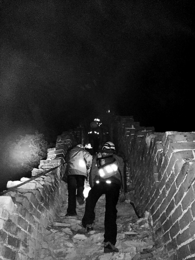 昨晚8點半左右,接到救援電話后,綠舟應(yīng)急救援隊派出了3名最富經(jīng)驗的老隊員趕往箭扣長城。這些隊員對地形相對熟悉,并且都在箭扣地區(qū)參與過十幾次的營救行動?杉幢闶沁@樣,因為天氣原因,救援人員在搜尋的過程中依然困難重重。