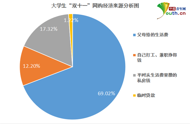 圖為大學(xué)生“雙十一”網(wǎng)購(gòu)經(jīng)濟(jì)來源分析。中國(guó)青年網(wǎng)實(shí)習(xí)記者 李華錫 制圖