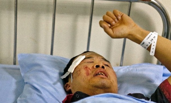 昨日下午3時(shí)30分許,長(zhǎng)安醫(yī)院急診科病床上,老楊的兒子躺在床上,左手半握拳搭在額頭,右額頭上貼著紗布,右眼角周邊淤血痕跡明顯,面部也有多處淤血。病床上的診斷顯示:閉合性顱腦損傷,顏面部皮膚組織挫裂傷,鼻外傷。老楊說,兒子一直說腹腔部疼痛、頭疼,病情還需要進(jìn)一步診斷。