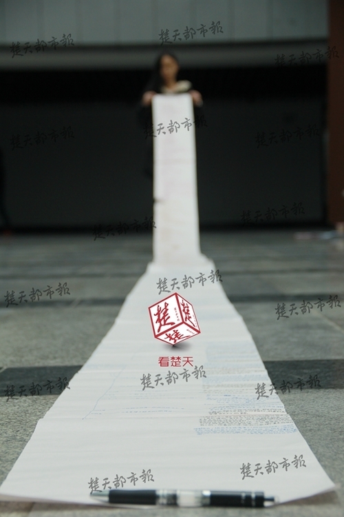 12月份的四六級考試剛剛結(jié)束,考研便緊隨其后。對此,位于武漢的文華學(xué)院的考研學(xué)子們也緊鑼密鼓地為考研做最后的沖刺。在圖書館大廳內(nèi),一幅長達(dá)七米、由筆記做成的卷軸引起了不少人的關(guān)注。