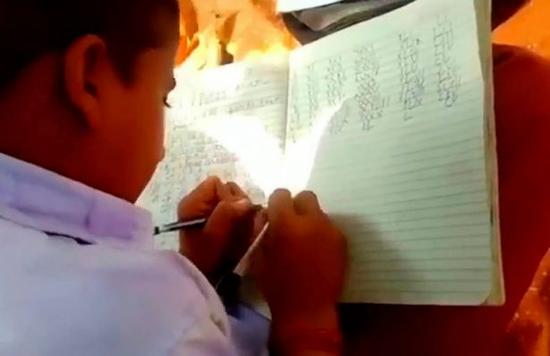這種神奇現(xiàn)象的出現(xiàn)離不開(kāi)校長(zhǎng)堅(jiān)定的信念和對(duì)學(xué)生雙手書(shū)寫(xiě)的訓(xùn)練。學(xué)校創(chuàng)始人、退伍士兵夏爾馬(Sharma)提到,他是受到印度首任總統(tǒng)的啟發(fā),從而開(kāi)始訓(xùn)練學(xué)生們書(shū)寫(xiě)技能的。每節(jié)45分鐘的課程中,他都會(huì)抽出15分鐘給學(xué)生做書(shū)寫(xiě)訓(xùn)練。