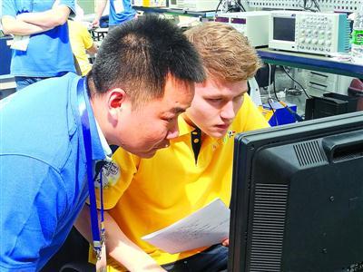 昨天“星光計(jì)劃”職業(yè)院校技能大賽上,首次迎來德國代表隊(duì),與中國學(xué)生同場競技。彭德倩 攝