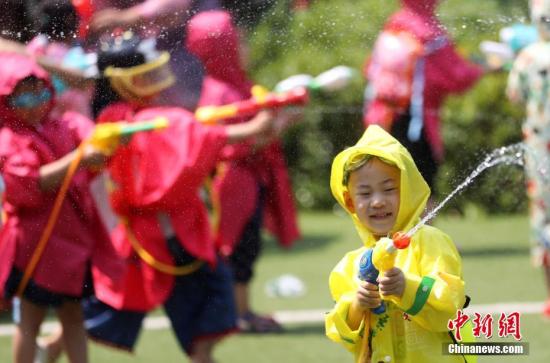 資料圖:南京小朋友“水槍大戰(zhàn)”嗨翻幼兒園。中新社記者 泱波 攝