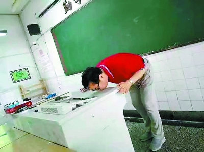這是一張會被永遠定格的照片:一個穿著紅色上衣的初中老師,在上完最后一節(jié)課后,低下自己的頭,深情地親吻相伴自己40年的講臺。浙江富陽郁達夫中學八(2)班的47位學生,很遺憾沒有看到這一幕,他們?nèi)コ灾酗埩恕6晃惑w育老師恰巧路過,拍下了這張珍貴的照片。