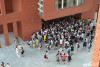2017年7月22日,青島,今天是大暑,青島部分地區(qū)溫度已超過30度,悶熱的夏天依然擋不住考研大軍的熱情。山東科技大學(xué)今天正式進(jìn)入暑期,為考研族準(zhǔn)備的自習(xí)室今天正式開放,早上不到6點(diǎn),J7和J14樓前就擠滿等待占座的考研族,場面堪比北上廣上班族擠地鐵,而這群人只是數(shù)千留校備戰(zhàn)考研的極小一部分。據(jù)了解,青島高溫期是在7、8月份,而該學(xué)校教室電風(fēng)扇都沒有配備,夏季特別悶熱,學(xué)校準(zhǔn)備的座位足夠,但是為了選擇一個(gè)通風(fēng)好的靠窗的座位,學(xué)生也是用盡各種辦法,在課桌上貼字條,或者干脆拿課本占座。圖片來源:央視網(wǎng) -