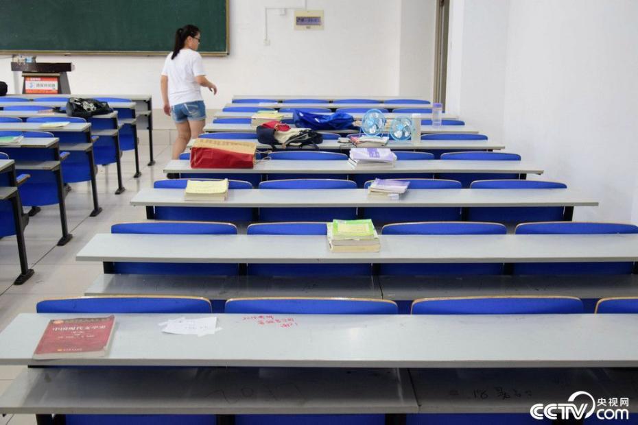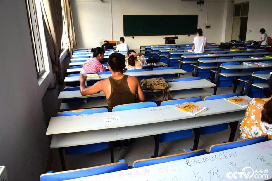 2017年7月22日,青島,今天是大暑,青島部分地區(qū)溫度已超過30度,悶熱的夏天依然擋不住考研大軍的熱情。山東科技大學(xué)今天正式進(jìn)入暑期,為考研族準(zhǔn)備的自習(xí)室今天正式開放,早上不到6點(diǎn),J7和J14樓前就擠滿等待占座的考研族,場面堪比北上廣上班族擠地鐵,而這群人只是數(shù)千留校備戰(zhàn)考研的極小一部分。據(jù)了解,青島高溫期是在7、8月份,而該學(xué)校教室電風(fēng)扇都沒有配備,夏季特別悶熱,學(xué)校準(zhǔn)備的座位足夠,但是為了選擇一個(gè)通風(fēng)好的靠窗的座位,學(xué)生也是用盡各種辦法,在課桌上貼字條,或者干脆拿課本占座。圖片來源:央視網(wǎng)