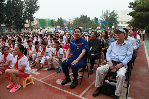 航天員景海鵬給孩子們分享了自己的童年經(jīng)歷與成長故事。從不會打籃球的“海鷗五號”到收獲人生中第一個飛行員嘉獎,憑借的就是刻苦努力,不服輸?shù)木。在他看來,航天員是他的職業(yè),飛上太空是他的事業(yè),他希望為孩子們插上航天夢想的翅膀,做“敢于有夢、敢于探索、敢于創(chuàng)新”的中國少年。