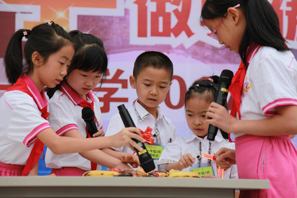 本屆開學典禮主題為“乘著科學的翅膀 做驕傲的中國少年”,校長劉暢在致辭中表示,希望孩子們把握難得的好奇心,不斷思考、不斷探索,乘著科學的夢想,做驕傲的中國少年。