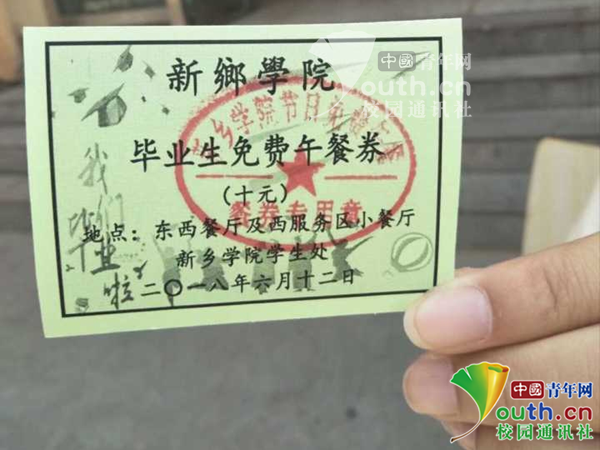 圖為畢業(yè)生展示所領餐券。新鄉(xiāng)學院記者團 供圖