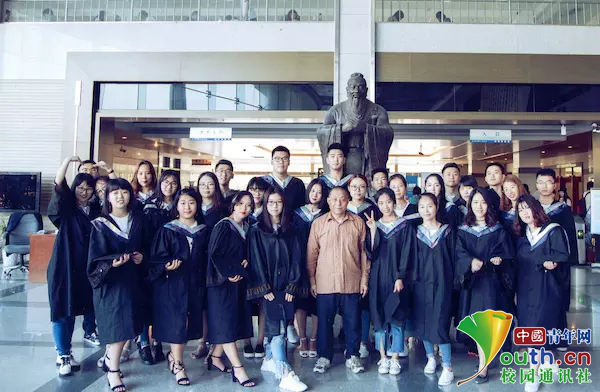 “張爺爺,我們和您一起拍張畢業(yè)照吧!碑厴I(yè)季,在中國(guó)石油大學(xué)(華東)圖書館,一隊(duì)隊(duì)身著學(xué)位服的畢業(yè)生簇?fù)碇?9歲的“書香守護(hù)人”張景海,在孔子像前幸福地拍合影。