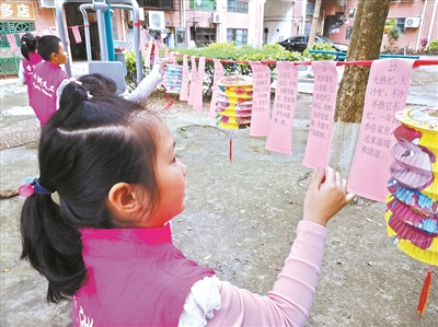 南坑社區(qū)“快樂四點半”課堂元宵節(jié)組織孩子猜燈謎活動。