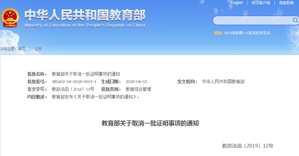 據(jù)教育部網(wǎng)站獲悉,為減證便民,辦好人民滿意的教育,教育部公布取消一批證明事項(xiàng),即部門規(guī)章設(shè)定的10項(xiàng)證明事項(xiàng)、部門規(guī)范性文件設(shè)定的12項(xiàng)證明事項(xiàng),以及無明文規(guī)定但在部分地區(qū)或?qū)W校實(shí)施的7項(xiàng)證明事項(xiàng)。
