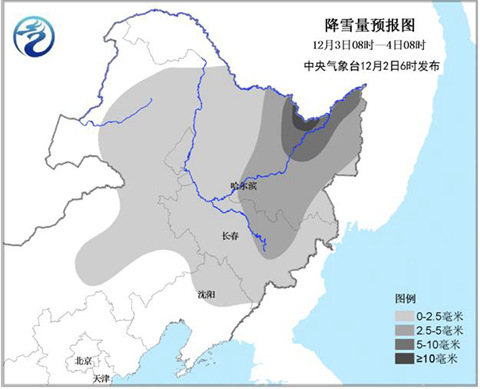 昨天,東北地區(qū)的降雪達(dá)到本輪降雪過程的鼎盛階段。監(jiān)測顯示,12月2日8時至3日6時,黑龍江、吉林東部和內(nèi)蒙古東北部等地降雪2~8毫米,黑龍江東部10~18毫米,虎林和饒河局地達(dá)21毫米。