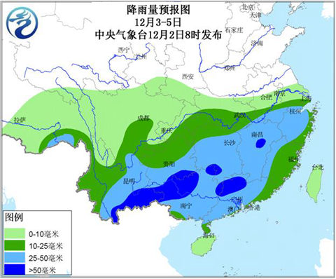 中央氣象臺預(yù)計,3日起,西藏東部、西南地區(qū)、華南、江南等地自西向東將有一次降水過程。云南東部、貴州南部、湖南、江西西部、廣西中北部等地有大雨,其中,湖南南部、廣西北部等地的部分地區(qū)有暴雨。對于云南來說,12月上旬出現(xiàn)如此強降雨較為少見,局地降雨量可能會打破12月上旬歷史紀(jì)錄。