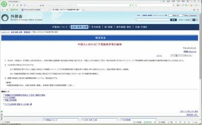 ▲日本外務(wù)省官方網(wǎng)站4月30日發(fā)布的“放寬對中國人簽證發(fā)放條件”的公告。