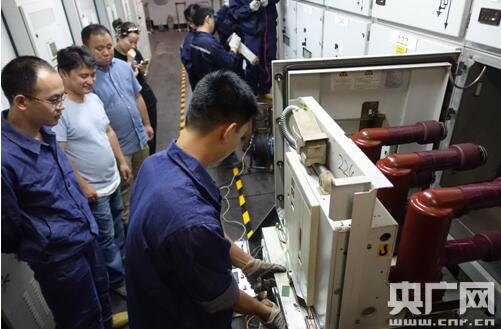 十一點半,工作人員開始核對工作票、許可票,凌晨,接電調(diào)下令并填寫倒閘操作票。為了確保工作萬無一失,在正式停電前,工作人員會在模擬圖版上模擬具體操作。