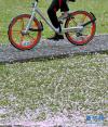 •   4月17日,一場(chǎng)春雨過(guò)后,一名游客在落滿花瓣的浙江省嘉興市南湖風(fēng)景區(qū)內(nèi)騎行。 新華社發(fā)(金鵬 攝)