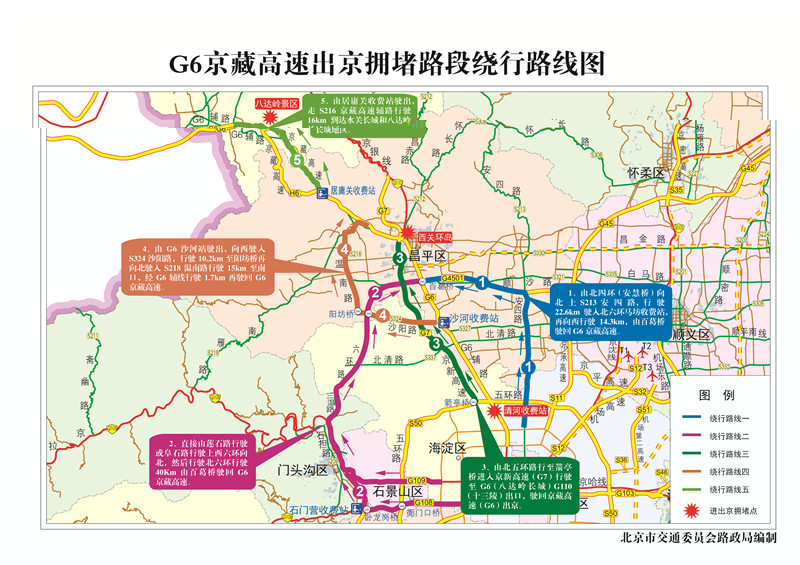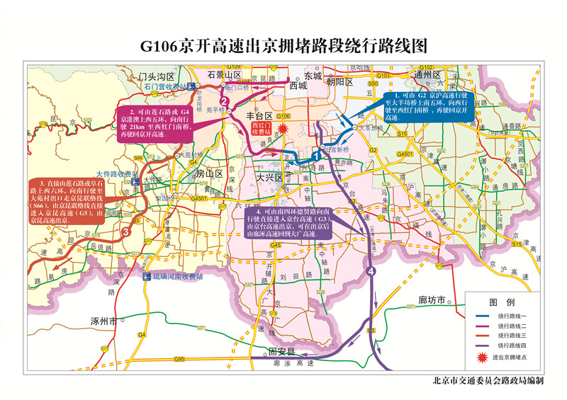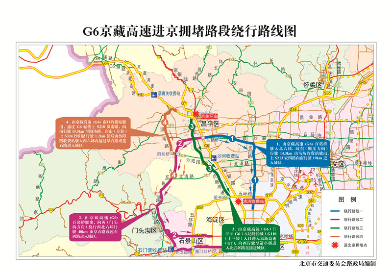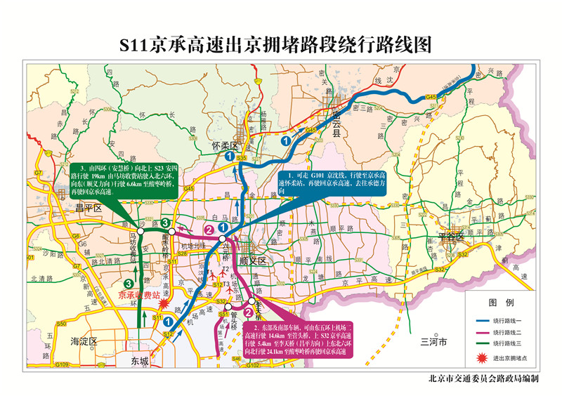 預(yù)計京開高速出京方向大興工業(yè)區(qū)至雙源橋、進(jìn)京方向黃各莊橋至梨花橋路段;京藏高速出京方向南口至居庸關(guān)路段;京港澳高速出京方向豐北橋至趙辛店、進(jìn)京方向琉璃河至竇店路段;京承高速出京方向沙峪至酸棗嶺橋、進(jìn)京方向魯疃橋至黃港橋路段;京平高速出京方向李橋至北務(wù)、進(jìn)京方向北務(wù)服務(wù)區(qū)至北務(wù);機場高速出京方向三元橋至五元橋、進(jìn)京方向溫榆橋至大山子路段;京通快速出京方向四惠橋至雙橋收費站、進(jìn)京方向京通進(jìn)京跨河橋至雙橋路段交通壓力仍將相對突出。