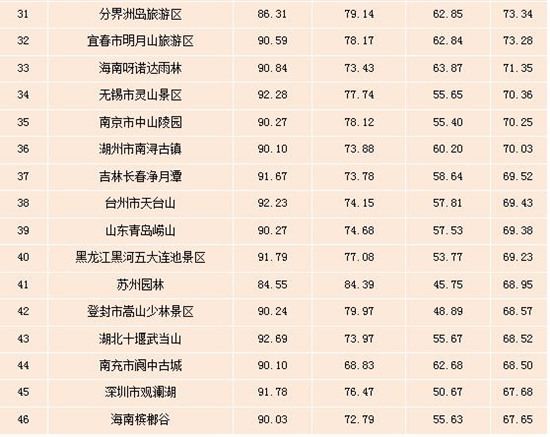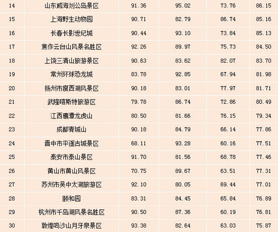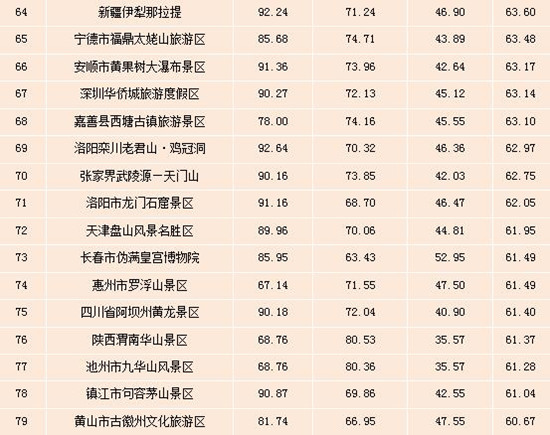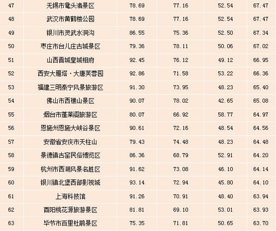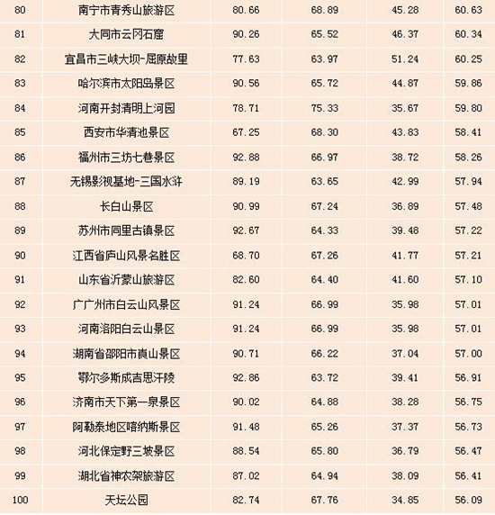 表:全國(guó)5A級(jí)景區(qū)雙微運(yùn)營(yíng)效果排行榜(Top100)