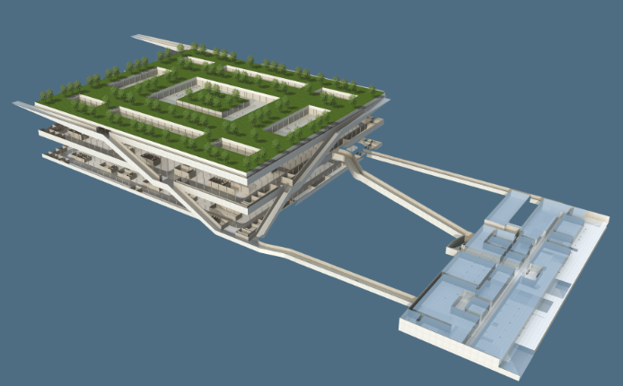 五棵松地下停車場坐落于海淀區(qū)五棵松橋的東北角,南臨301醫(yī)院、東北為五棵松籃球館,是北京市投資建設(shè)單體最大的公共停車設(shè)施,項目占地約7.84萬平方米;地下二、三層為停車場,總建筑面積約13.83萬平方米,總車位2679個;設(shè)有3對進出口,車主可從西四環(huán)輔路及復(fù)興路輔路、玉淵潭南路進入停車場,出口均位于停車場北側(cè),車主出場后客通往西四環(huán)、西翠路及玉淵潭南路;此外,停車場特別設(shè)置1條人行通廊、2條行車通廊與301醫(yī)院地下車庫相通。