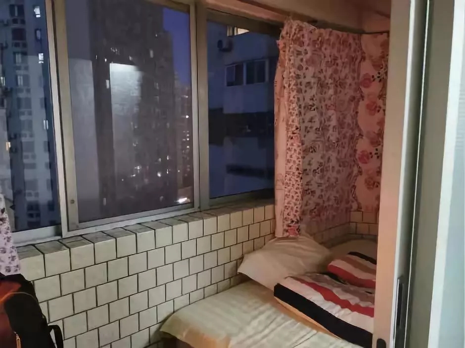 10月末的一晚,最低溫度5攝氏度。當記者推開預訂好的“經(jīng)濟間”房門時,發(fā)現(xiàn)居然是個陽臺。房間內(nèi),床和小桌子緊貼兩側墻壁放置,中間僅有一人站立的空間,天花板上還掛著晾衣桿,陽臺和客廳間的門無法上鎖。