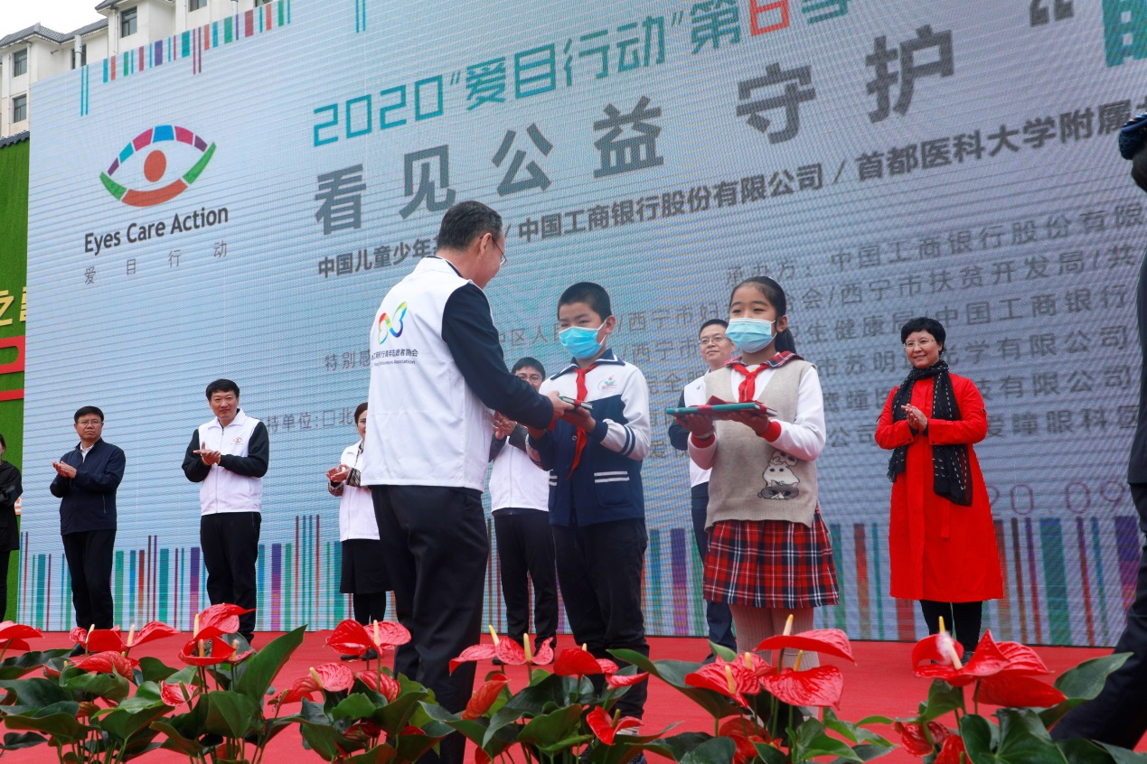中國工商銀行總行團(tuán)委書記孫伯龍在啟動儀式上介紹道,“愛目行動”是全國青年志愿服務(wù)示范項目,自2015年發(fā)起至今,已連續(xù)開展近6年時間;顒又荚趶膼垩圩o(hù)眼的知識傳播和用眼衛(wèi)生的習(xí)慣養(yǎng)成入手,從整體上提高中國兒童視力水平,提高全社會對兒童視力健康的關(guān)注程度和保障水平。截至目前,工商銀行共向“愛目行動”捐款400多萬元,同時組織全行350余名青年志愿者參與到行動中來,把對未成年人的關(guān)心關(guān)愛落實(shí)到具體行動中。