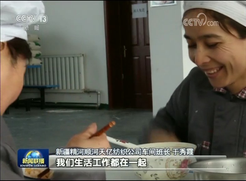 新疆維吾爾自治區(qū)精河順河天億紡織公司車間班長(zhǎng) 于秀霞:我?guī)У倪@些工人里,有維吾爾族、蒙古族、回族、哈薩克族,我們生活工作都在一起,我作為他們大姐,有責(zé)任幫助他們,讓他們生活得更好。