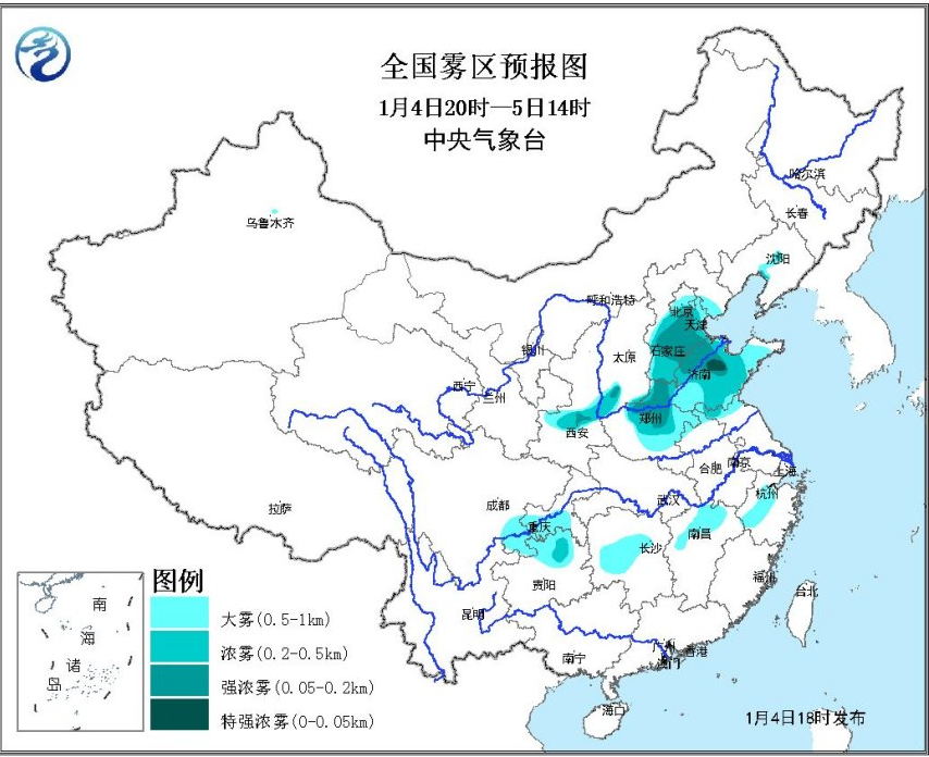 據(jù)中央氣象臺(tái)預(yù)計(jì),4日夜間至5日上午,北京中南部、天津、河北中南部、河南中北部、山東大部、山西西南部、陜西關(guān)中等地有大霧,其中,北京南部、天津、河北中南部、河南北部、山東中西部等地有能見度低于500米的濃霧,部分地區(qū)能見度低于200米,局地不足50米。