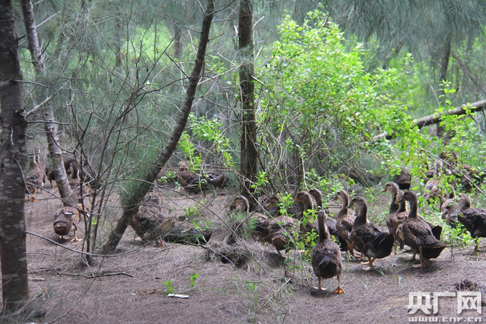 馬裊海鴨養(yǎng)殖基地,位于臨高縣博厚鎮(zhèn)道灶村沿海一帶。這里有大面積的紅樹林、海溪水交錯的河流及淺灘;每當(dāng)海潮退去,大量的海蟹、魚蝦和貝類會寄居在這些沿海植被上,成為海鴨的天然食糧。因此,該地生長的海鴨毛色好、肉質(zhì)鮮,頗有名氣。