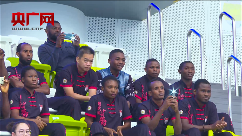 在比賽場(chǎng)館的觀眾席上,記者見到了一群來自非洲五國(guó)的朋友們。從今年7月起,他們從各自的國(guó)家聚集在天津霍元甲文武學(xué)校,開始了為期三個(gè)月的武術(shù)學(xué)習(xí)。