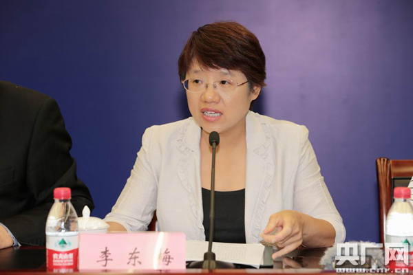 今天上午,中國(guó)殘聯(lián)教就部副主任李東梅接受記者采訪。(央廣網(wǎng)記者王晶 攝)