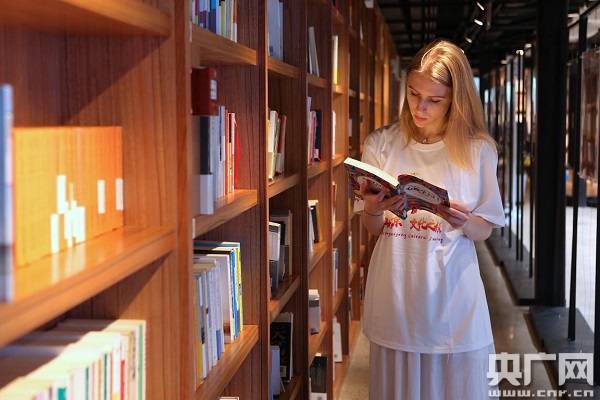 外國青年體驗(yàn)北京特色書店(央廣網(wǎng)記者 孫冰潔 攝)