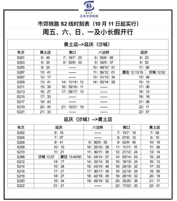 S2線時(shí)刻表(央廣網(wǎng)發(fā) 北京鐵路供圖)