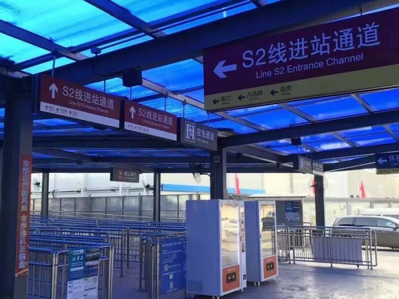 按照車站里的標(biāo)識(shí)指引,可快速購票乘車。想去八達(dá)嶺、世園會(huì)的乘客就可乘坐S2線,如果是想去雁棲湖、紅螺寺、慕田峪或是古北水鎮(zhèn),可乘坐S5線。為了方便旅客乘車,黃土店站內(nèi)的大屏幕全天都會(huì)播放車次信息。