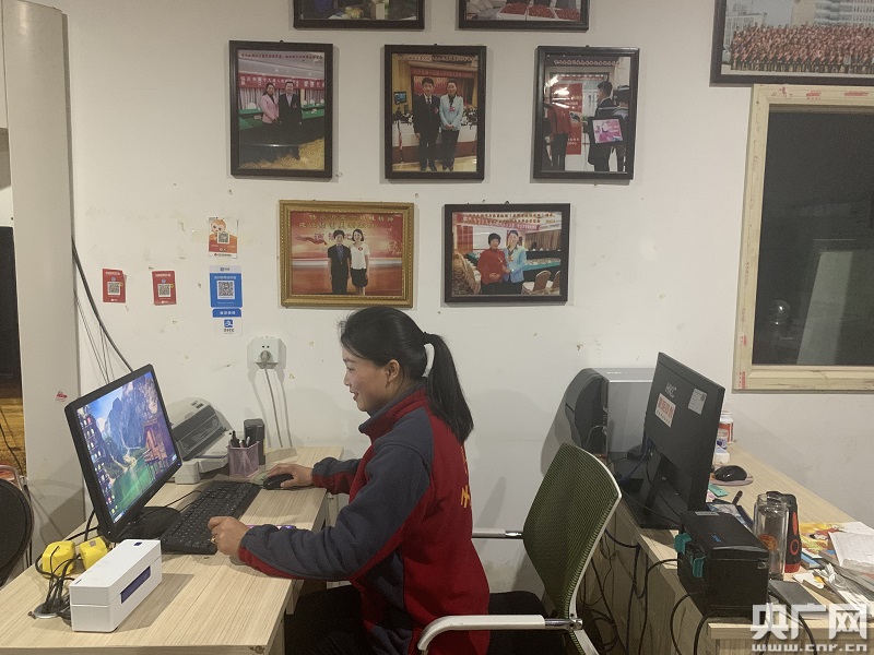 牛慶花在辦公室打理自家的淘寶店鋪(央廣網(wǎng)記者 孫冰潔 攝)