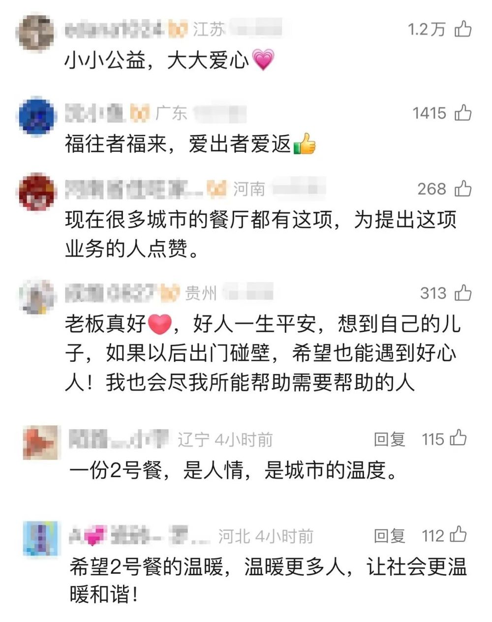 我們被“2號(hào)餐”感動(dòng),因?yàn)樗|動(dòng)了人們內(nèi)心最柔軟的部分,也期待這般小而美的善行越來(lái)越多,為我們的社會(huì)注入更多溫暖與力量。