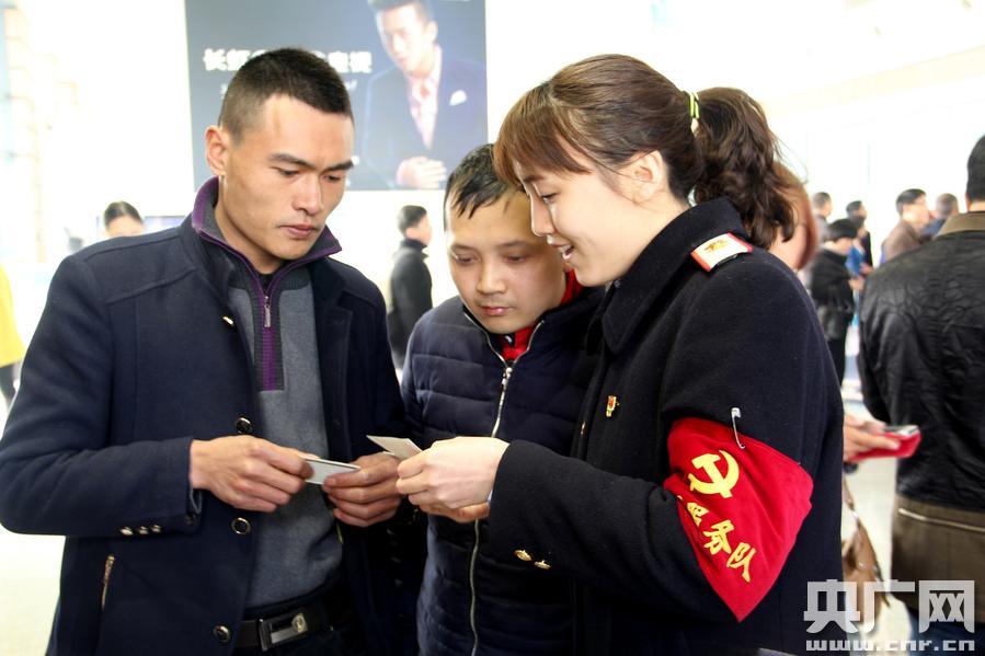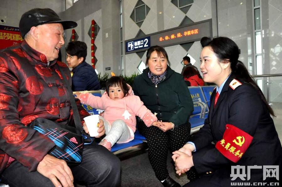 德陽站黨員為旅客提供幫助 央廣網成都2月17日消息(記者韓民權 通訊員劉傲 譚嘯)“謝謝同志,有黨員的地方,就有溫暖!”綿陽站7站臺,重點旅客李家怡緊握綿陽北站黨員服務隊員張長軍的手說。休班黨員組成“黨員服務隊”,幫著旅客搬運行李、參與乘降組織,這讓服務重點旅客最后一公里變得格外溫馨。 春運以來,類似場景每天在綿陽車務段管內幾個客流量較大的客運站經常出現。該段黨組織把奮戰(zhàn)春運作為“兩學一做”學習教育成果集中展示的舞臺,充分發(fā)揮黨組織優(yōu)勢調動廣大黨員在春運中當先鋒、立新功、展作為。在飄揚的黨旗下,千里鐵道線到處是黨員攻堅克難、創(chuàng)先爭優(yōu)的身影,廣大旅客回家路也更安全、方便和溫馨。 綿陽車務段黨委把奮戰(zhàn)春運作為黨員干部持續(xù)抓作風、改作風的重要平臺,該段領導班子成員帶頭率各春運包保組深入春運一線和重點站車,盯住關鍵部位,加強檢查指導,強化現場控制,以過硬作風和模范行動,帶動廣大干部職工奮戰(zhàn)春運。 該段黨委成立3個干部作風督察組,加強對全段干部春運期間值班值守、包保檢查和履職情況的明察暗訪,對作風不實、工作漂浮、不在狀態(tài)的干部嚴肅追究責任,為做好春運工作提供紀律保證。 該段黨委深化黨內“三無”競賽、細化考核量化指標、優(yōu)化黨員崗區(qū)設置,開展“三亮三比三評”等活動,打造黨員先鋒崗、示范責任區(qū)和黨內品牌,引導黨員創(chuàng)先進、爭優(yōu)秀,深入推進運輸一線黨支部基礎建設。 綿陽站黨總支優(yōu)化黨員崗區(qū)設置,組織黨員開展“我為春運獻計策”等活動,收集并推行重點旅客愛心服務卡等20條服務措施,持續(xù)提升春運服務質量。 德陽站黨總支細化黨支部、黨員工作標準,老黨員與新職工開展“結對幫扶”,落實“平安春運、有序春運、溫馨春運”便民利民新舉措,黨員休班時間主動加崗、送便民服務到站臺。 該段黨委在綿陽、江油、德陽等3個客運量較大車站設置“雅心之聲”“詩城之窗”“旌城之光”等黨員服務咨詢臺,組建“鄰站黨員服務隊”“黨員安全突擊隊”等10支隊伍,制作綬帶、配發(fā)黨徽,亮明身份展作為。 與此同時,該段黨委下撥慰問金11.8萬元,及時把黨組織的關懷和溫暖送到老黨員和困難黨員家中,并結合深入細致的思想政治工作,達到“慰問一人、溫暖一戶、帶動一片”的效果,讓廣大干部職工在奮戰(zhàn)春運的同時感受到了黨組織的關懷和溫暖。