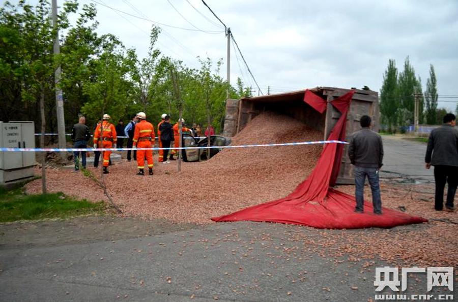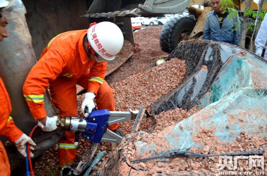貨車側(cè)翻埋壓轎車致1人被困 警民協(xié)手同施救(通訊員供圖) 央廣網(wǎng)中衛(wèi)5月3日消息(記者許新霞 通訊員徐寶東 邱野)5月2日8時(shí)46分,寧夏中衛(wèi)市消防支隊(duì)接到報(bào)警稱:位于中衛(wèi)市201省道沙坡頭旅游新鎮(zhèn)路段一輛滿載碎石的大貨車側(cè)翻埋壓住一輛轎車,轎車內(nèi)有1人被困,情況十分危急。 119指揮中心立即調(diào)派轄區(qū)水上中隊(duì)力量火速趕往現(xiàn)場(chǎng)。到達(dá)現(xiàn)場(chǎng)后現(xiàn)場(chǎng)勘察看到,大貨車側(cè)翻路旁,油箱嚴(yán)重漏油,小轎車副駕駛一側(cè)壓在貨車車廂下,內(nèi)有一名男子被擠壓在嚴(yán)重變形的車體內(nèi)動(dòng)彈不得,不時(shí)發(fā)出痛苦地求救,情況十分危急。在了解現(xiàn)場(chǎng)情況后,中隊(duì)指揮員立即下達(dá)命令,利用起重氣墊、液壓擴(kuò)張器等工具打開救人空間,但由于貨車荷載過大,救援器材無法快速有效發(fā)揮作用。就在消防官兵緊急救援的過程中,交警立即聯(lián)系裝載車、吊車等大型機(jī)械輔助救援,周圍群眾也自發(fā)組織用鐵鍬清理車頂碎石。隨后,通過吊車牽引、裝載車支點(diǎn)保護(hù),終于將側(cè)翻貨貨車移開,消防官兵利用液壓擴(kuò)張器等救援工具對(duì)車內(nèi)被困者腿部位置進(jìn)行擴(kuò)張、破拆。經(jīng)過半個(gè)小時(shí)的緊張救援,在交警、消防官兵以及周圍群眾共同合力下,最終成功將被困人員救出,并迅速抬上120救護(hù)車送往醫(yī)院進(jìn)行救治。 據(jù)了解,該起事故是由于車速過快駕駛員規(guī)避車輛引發(fā)的。 在此消防部門提示廣大駕駛員,謹(jǐn)慎駕駛,注意安全,避免超速行車。