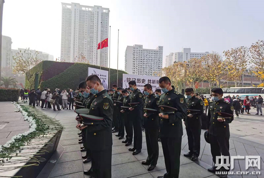 央廣網(wǎng)上海12月13日消息(記者周洪)今天是第7個(gè)南京大屠殺死難者國家公祭日。上午9時(shí),上海四行倉庫抗戰(zhàn)紀(jì)念館在上海四行抗日紀(jì)念地晉元紀(jì)念廣場(chǎng)(彈孔墻)舉行“銘記歷史,共祈和平——南京大屠殺死難者國家公祭日”主題活動(dòng),這也是紀(jì)念館連續(xù)第3年舉辦此項(xiàng)活動(dòng)。駐區(qū)部隊(duì)官兵代表、大學(xué)生代表和市民代表等百余人參加活動(dòng),共同緬懷在中國人民抗日戰(zhàn)爭(zhēng)中英勇獻(xiàn)身的民族英烈,共同悼念南京大屠殺死難者和所有在日本帝國主義侵華戰(zhàn)爭(zhēng)中遇難的同胞。