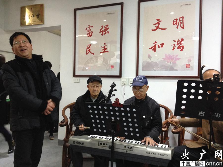 路橋管前村文化禮堂內(nèi),戲迷們正在表演(央廣網(wǎng)記者 李佳 攝)