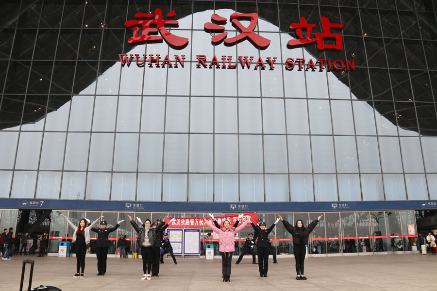 2017年春運大幕將于明日正式拉開,武漢鐵路警方希望通過這種新穎獨特的方式,拉近與旅客之間的距離,并向廣大出行旅客傳遞安全出行理念,吹響“平安、有序、溫馨”出行的春運集結(jié)號。