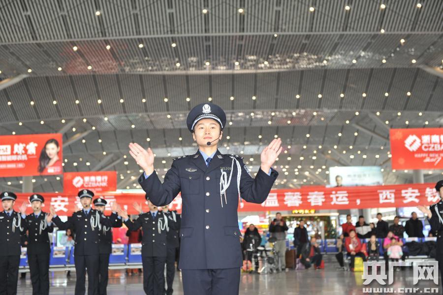 西安鐵路公安處處長于廣燕為群眾送“!保▍腔顫姅z) 央廣網(wǎng)西安1月12日消息(記者雷愷 通訊員吳活潑 胡珂)春運(yùn)大幕即將將拉開,今天(12日),西安鐵路公安處在西安北站全面啟動(dòng)春運(yùn)安保工作。 在西安北站二樓候車廳,一場精彩激昂的架子鼓秀吸引了旅客的駐足。一群身著警服的民警走進(jìn)旅客中間,以一曲《回家的路》拉開了西安鐵警春運(yùn)愛民服務(wù)活動(dòng)的序幕。隨后,特警、交警、乘警、治安、安檢等警種民警依次上臺(tái),通過情景模擬演練、面對(duì)面宣講、有獎(jiǎng)問答等形式,向過往旅客宣傳春運(yùn)出行安全常識(shí)。 西安鐵路公安處處長于廣燕介紹,今年春運(yùn),西安鐵警緊盯高鐵旅客出行安全這一重點(diǎn),全處1800名民警和2600多名輔警全員在崗,全面提升轄區(qū)治安管控工作等級(jí),重拳打擊以倒賣車票、盜竊財(cái)物、欺詐旅客等各類慣性違法犯罪活動(dòng)為主要內(nèi)容的“獵鷹”“天網(wǎng)”“利劍”三大戰(zhàn)役,努力為廣大旅客平安出行創(chuàng)建良好的“站、車、線”治安環(huán)境。 同時(shí),警方將圍繞“平安春運(yùn)、有序春運(yùn)、溫馨春運(yùn)”這一主題,部署全處各單位、各崗位立足本職,開展主動(dòng)為旅客服務(wù)活動(dòng),方便特殊群體及孕婦、老年人和殘疾旅客出行,讓旅客平安返家。 -
