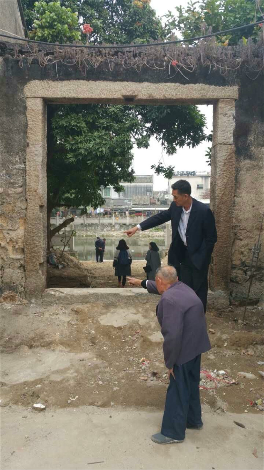 在清理河道兩邊環(huán)境衛(wèi)生時,得到村里老人的支持,有一位老者提供了重要線索,“小時候,他爺爺就常跟他講述樟林古港的故事”,老人來到新興街東門附近,說:“這里,可能就是當年的古碼頭,人們從這里登船,去過番!