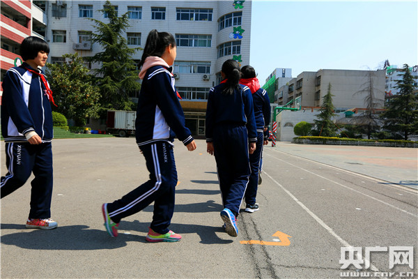 央廣網(wǎng)濟(jì)南3月28日消息(記者林彥銀)近日,河南省濮陽(yáng)縣第三實(shí)驗(yàn)小學(xué)由學(xué)生“集體上廁所”引發(fā)的踩踏事故引起人們對(duì)校園安全的深思。而山東省濟(jì)南市新苑小學(xué)早在5年前就堅(jiān)持讓學(xué)生按照校園內(nèi)的箭頭走路,有秩序地如廁、上學(xué)、放學(xué)和上課間操。另外,學(xué)校教學(xué)樓內(nèi)的樓梯中間也畫(huà)有黃色的分割線,學(xué)生上下樓需靠右走。