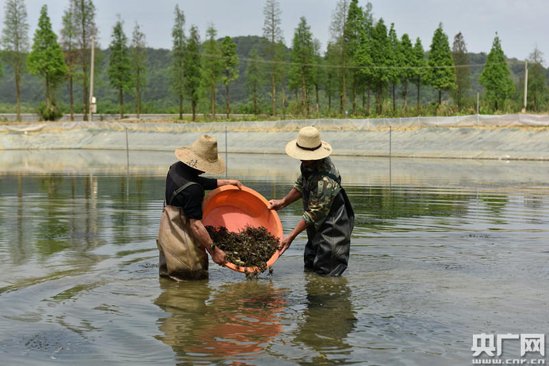 央廣網(wǎng)南昌4月26日消息(記者謝元森 通訊員李紅梅 萬朝暉)4月26日,在江西省進賢縣羅溪蟹苗繁育基地,養(yǎng)殖人員正在把暫養(yǎng)池里的蟹苗捕撈投放到精養(yǎng)池進行分塘養(yǎng)殖,規(guī)格為每畝1000尾,開始池塘養(yǎng)蟹試驗。這是進賢縣首次推行池塘生態(tài)養(yǎng)蟹試點。