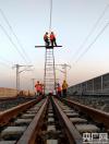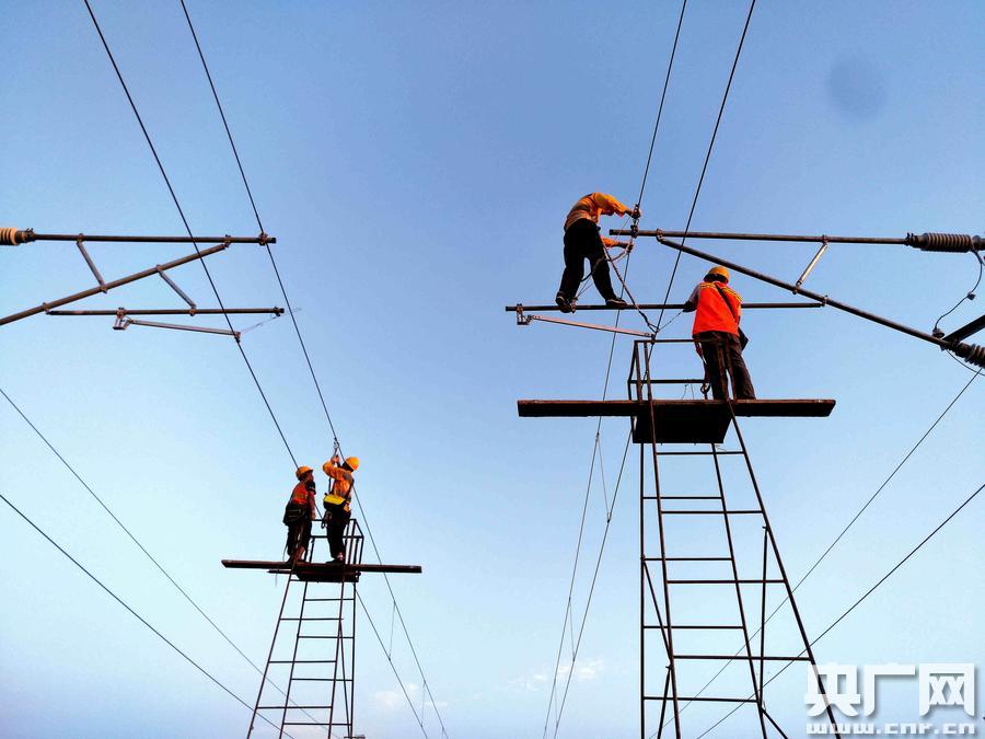 (央廣網(wǎng)發(fā) 葉果攝) 央廣網(wǎng)重慶7月15日消息(記者劉湛 通訊員胡志強(qiáng))連日來,面對四川南充地區(qū)持續(xù)40℃的高溫天氣,成都供電段組織南充供電車間接觸網(wǎng)專業(yè)青工們,連續(xù)奮戰(zhàn)在蘭(州)渝(重慶)鐵路南充東站至南充北站的聯(lián)絡(luò)線上,對新線接觸網(wǎng)設(shè)備進(jìn)行標(biāo)準(zhǔn)化平推,確保設(shè)備“零缺陷”。 -