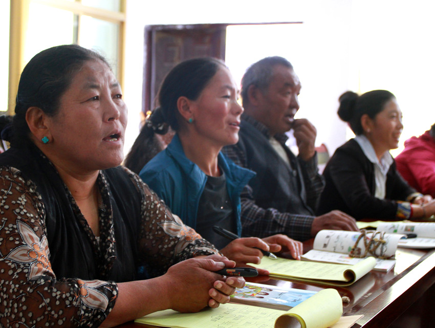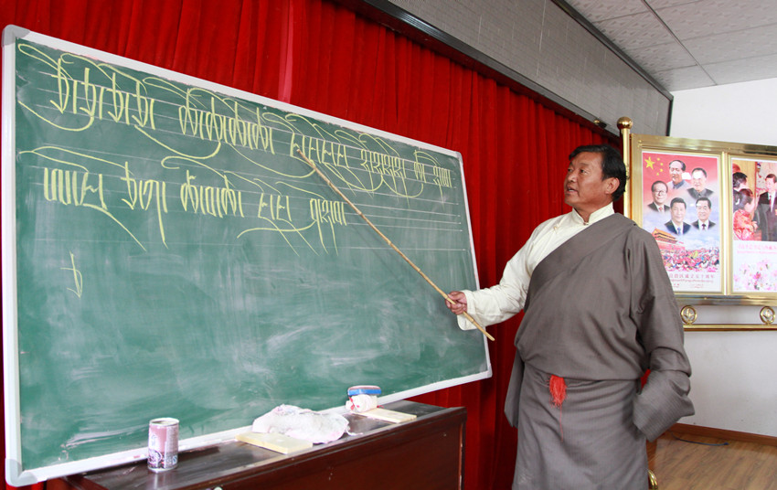 隨著朗朗書聲,來自江洛康薩社區(qū)5組的居民瓊達正在社區(qū)區(qū)委會里跟著社區(qū)里的中老年人在這里學習藏文。她說:“通過簡單的學習小到可以解決她們記個電話號碼、簽字這些日常所需,學好了更是能讀書提高自己!